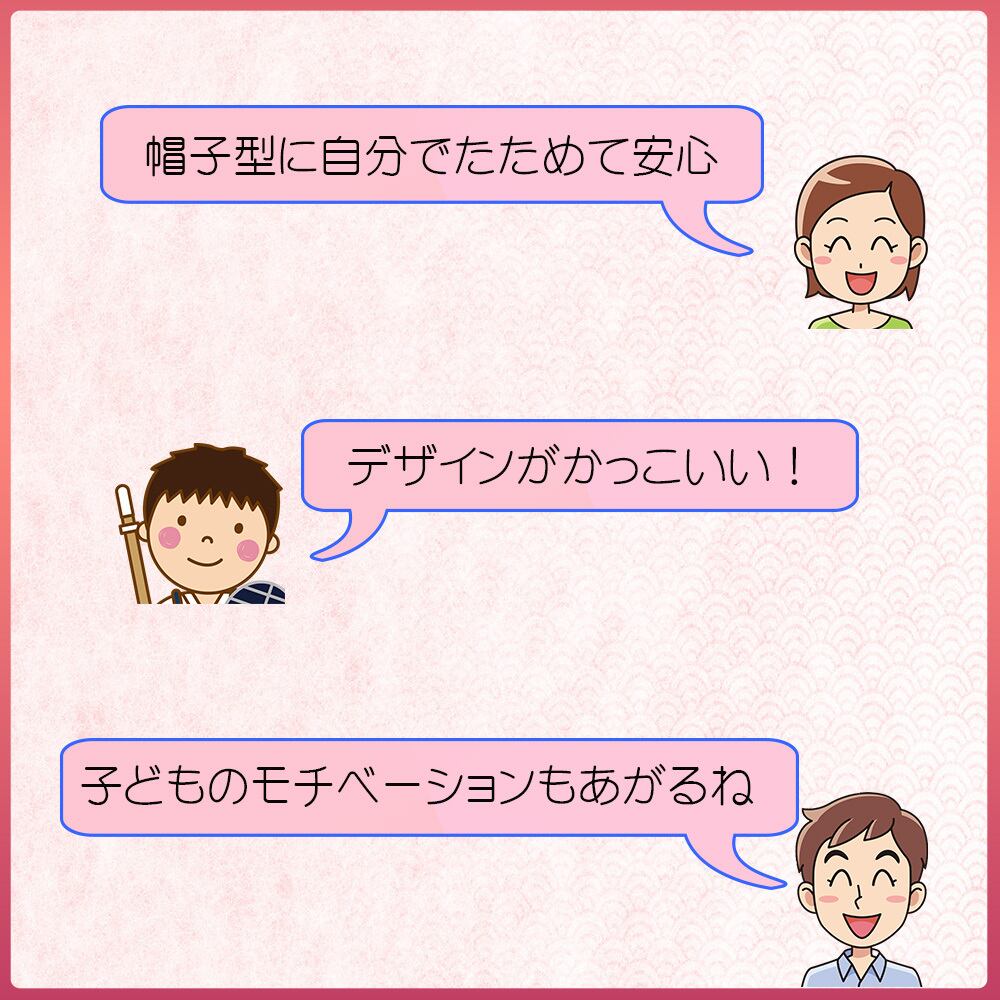 初心者や小学校低学年くらいの時は、手ぬぐいがうまく巻けず、帽子型に折り、帽子をかぶるように使うことがあります。